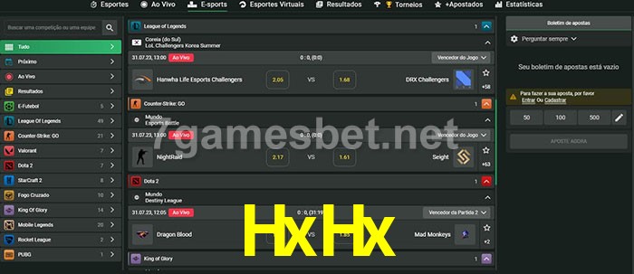 O HxHx oferece uma grande seleção de opções de apostas em e-sports com probabilidades competitivas